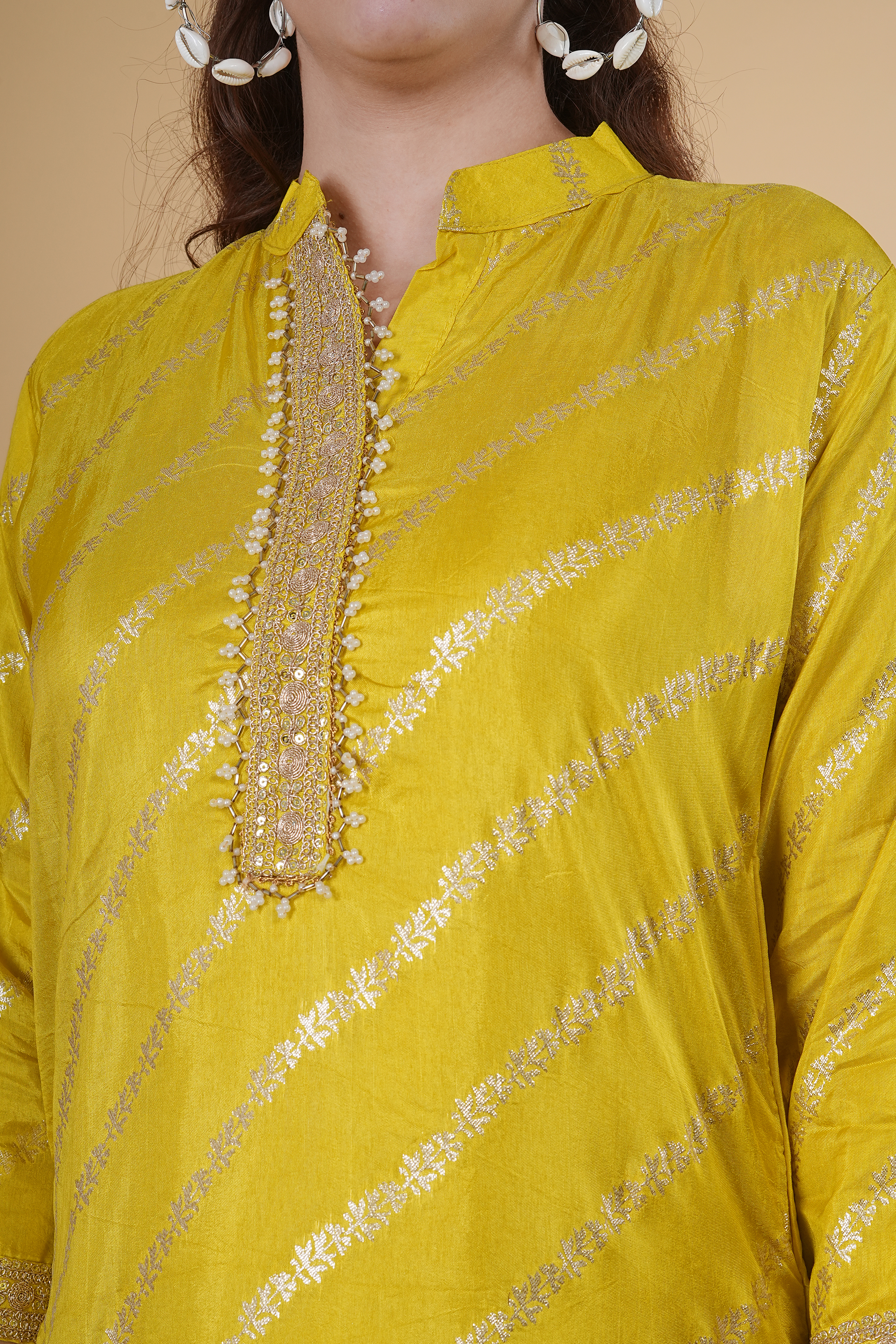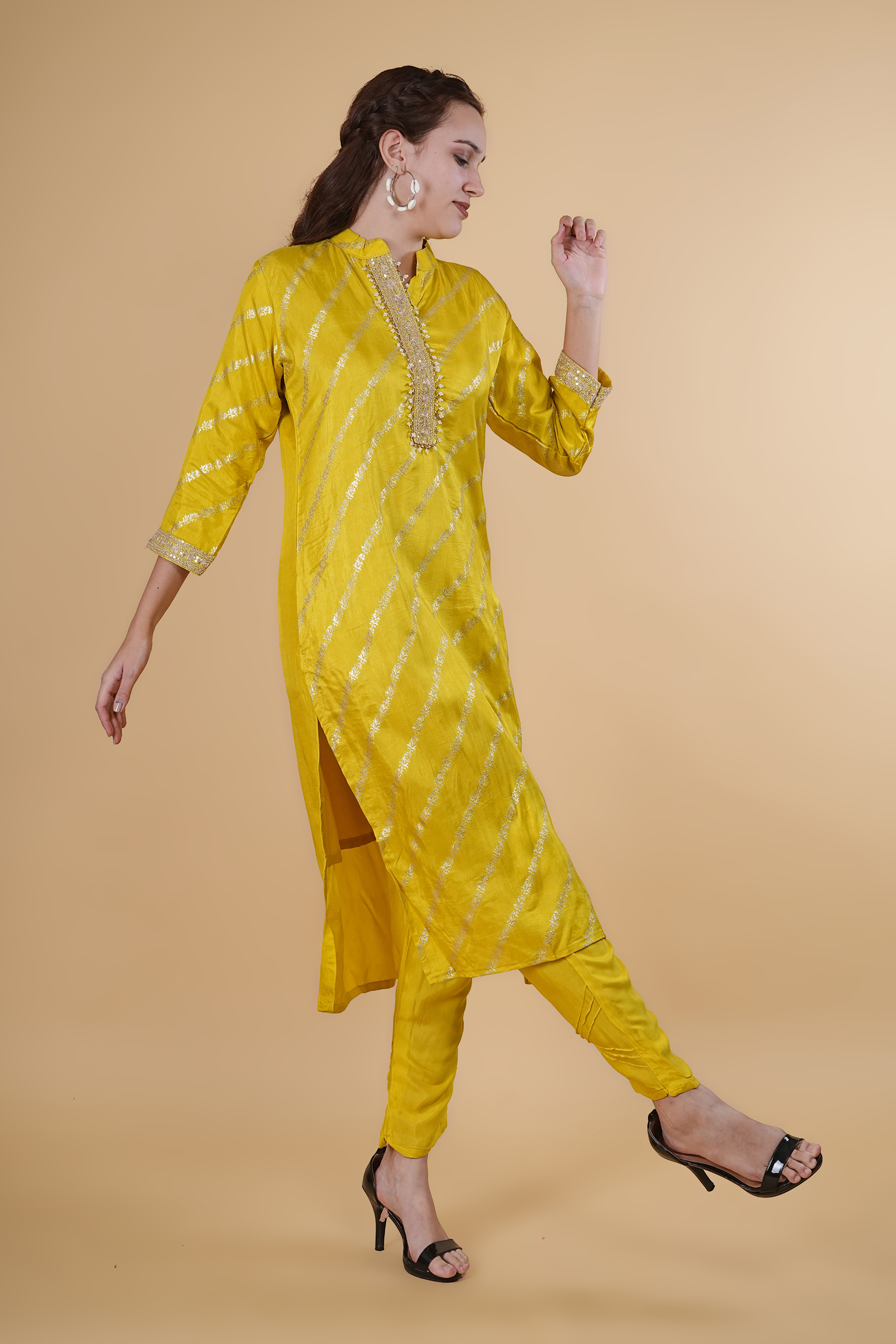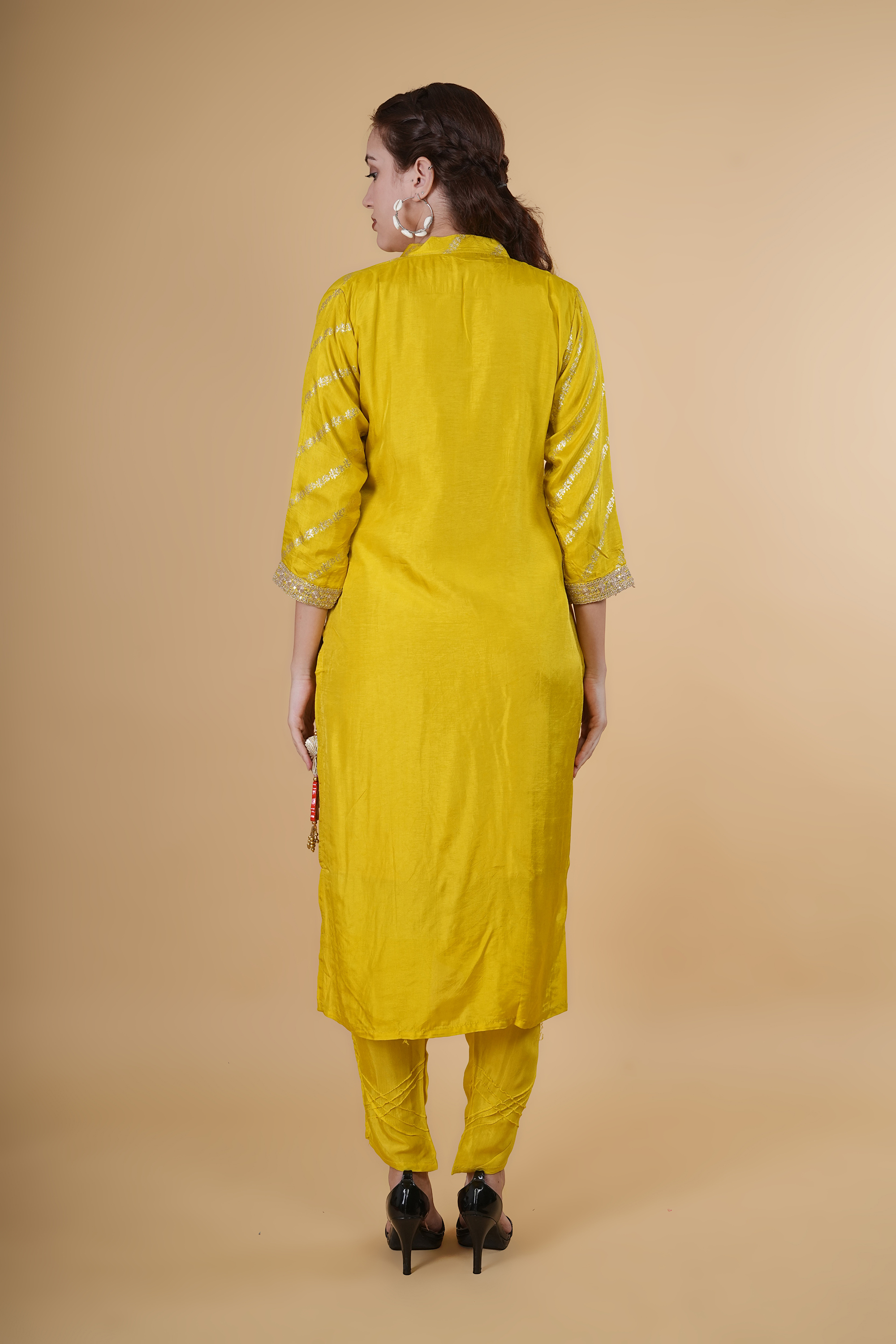 Lemon color suit with dupatta and tangles